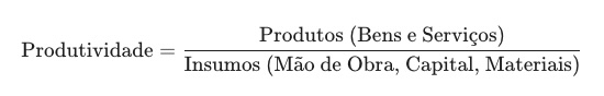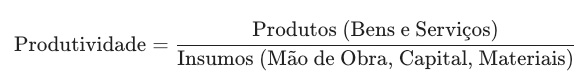 Em termos simples, é a relação entre a quantidade de produto gerada e a quantidade de insumos utilizados para produzi-lo.